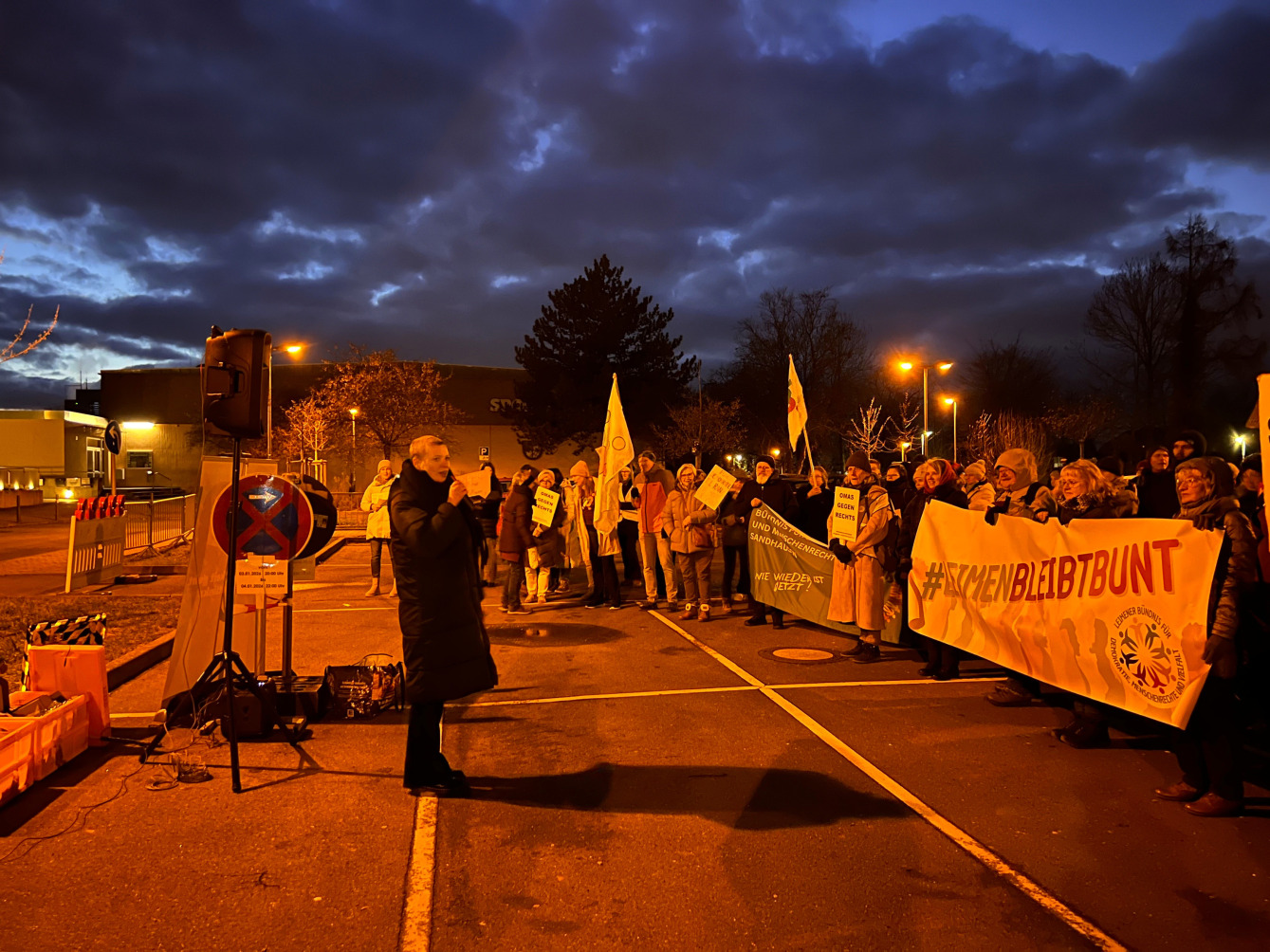 Zum Abschluss bekräftigte Eva Neuschäfer für das Bündnis die Notwendigkeit einer klaren Haltung gegen das Wiedererstarken rechtsextremer Strömungen. Gemeinsam setzten die Anwesenden ein Zeichen der Erinnerung und des Zusammenhalts: Nie wieder ist jetzt!